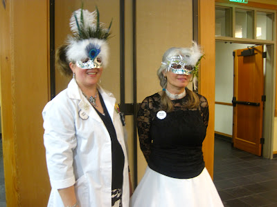 That mask, hand-painted in Venice (according to the info printed on the inside), was a steal at Marshall's for, I think, $17. She made the cool belt herself.
